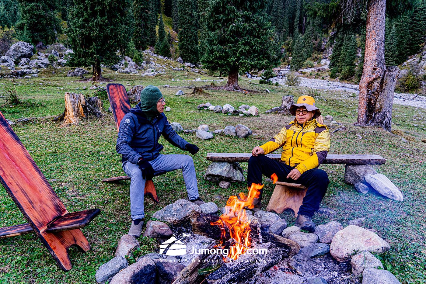 덜컹덜컹.... 부릉부릉~ 바위를 밟고 올라갈 때마다 내 몸도 함께 튕겨 오른다. 차가 힘들어하는 듯하여 내려서 걷기도 한다. 오르는 내내 주변의 경치는 아름답다. 거친 강물살이며 첩첩산중은 꾸밈이 없는 자연 그대로이다. 산 비탈길 가르며 달려 도착한 곳이 해발 2,490m에 자리한 카라콜 베이스캠프다. 알라콜 호수를 가기 위해서는 지금 가는 이곳과, 반대편에 있는 캠프에서 1박을 하여야 하는 코스가 있다. 반대편은 이전에 경험하였기에 새로운 경험을 위하여 이쪽 카라콜 쪽에서 출발하기로 하였다. 어느덧 시계는 18시 30분을 가리키고 있었다. 9월인데도 산속은 아직 어둠을 허용하지 않는다. 먼저 일행들과 오늘 밤에 묵을 유르트(게르)를 확인하고 주변을 산책했다. 캠프 앞으로는 옥빛 푸른 계곡 물이 세차게 굽이치며 흐른다. 사방을 둘러싼 산세는 마치 커다란 벽처럼 우리를 휘어 감싸듯이 위압적이다. 강한 기운의 산들 사이에 작은 베이스캠프가 독야청청 자리하고 있다. 재래식 간이 화장실에 전기도 없는 자연 친화적인 에코 캠프다. 열악한 시설에 잠자리가 살짝 걱정은 되지만, 그래도 오늘과 내일만 참으면 다시 호텔에서 잘 수 있다면서 스스로를 다독였다. 오지 여행은 늘 그러하듯이 설렘과 불편함 그리고 감동이 함께한다.